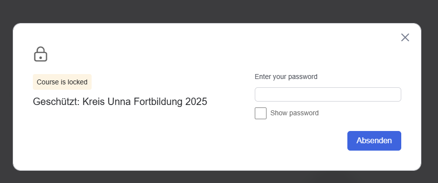 Um den Kurs freizuschalten, benutzt Ihr das bekannte Kennwort, was sich in den letzten Jahren nicht geändert hat.